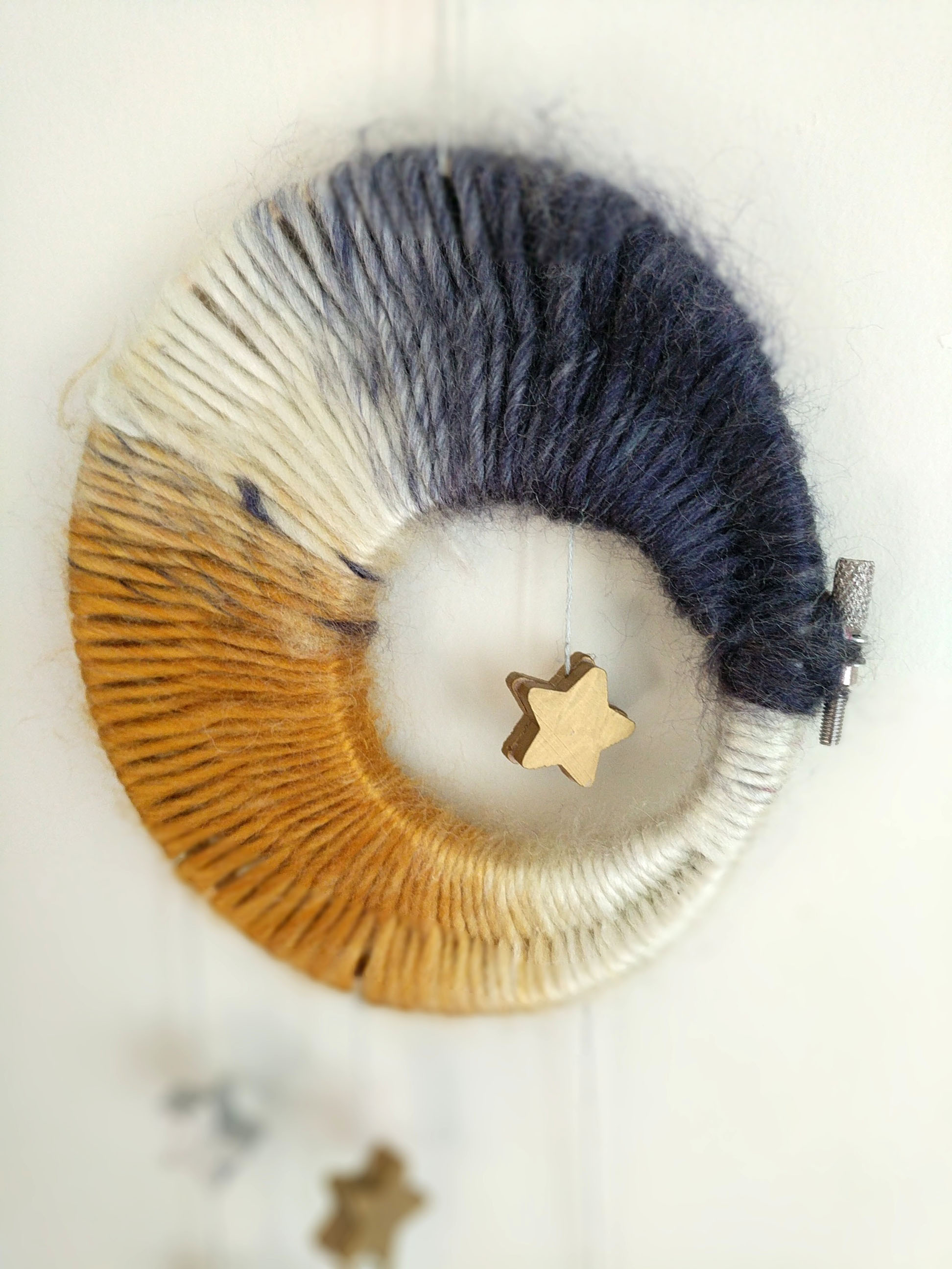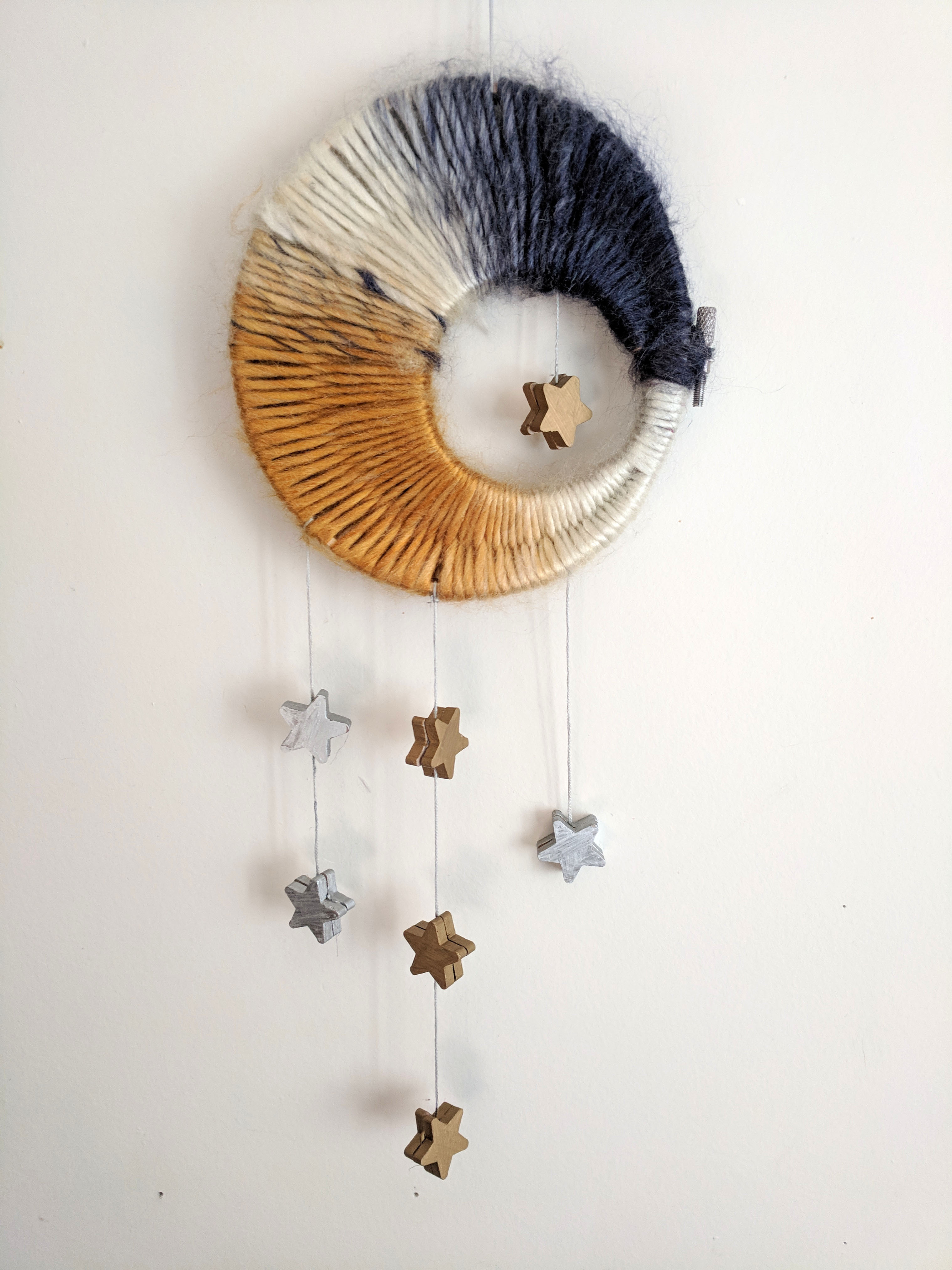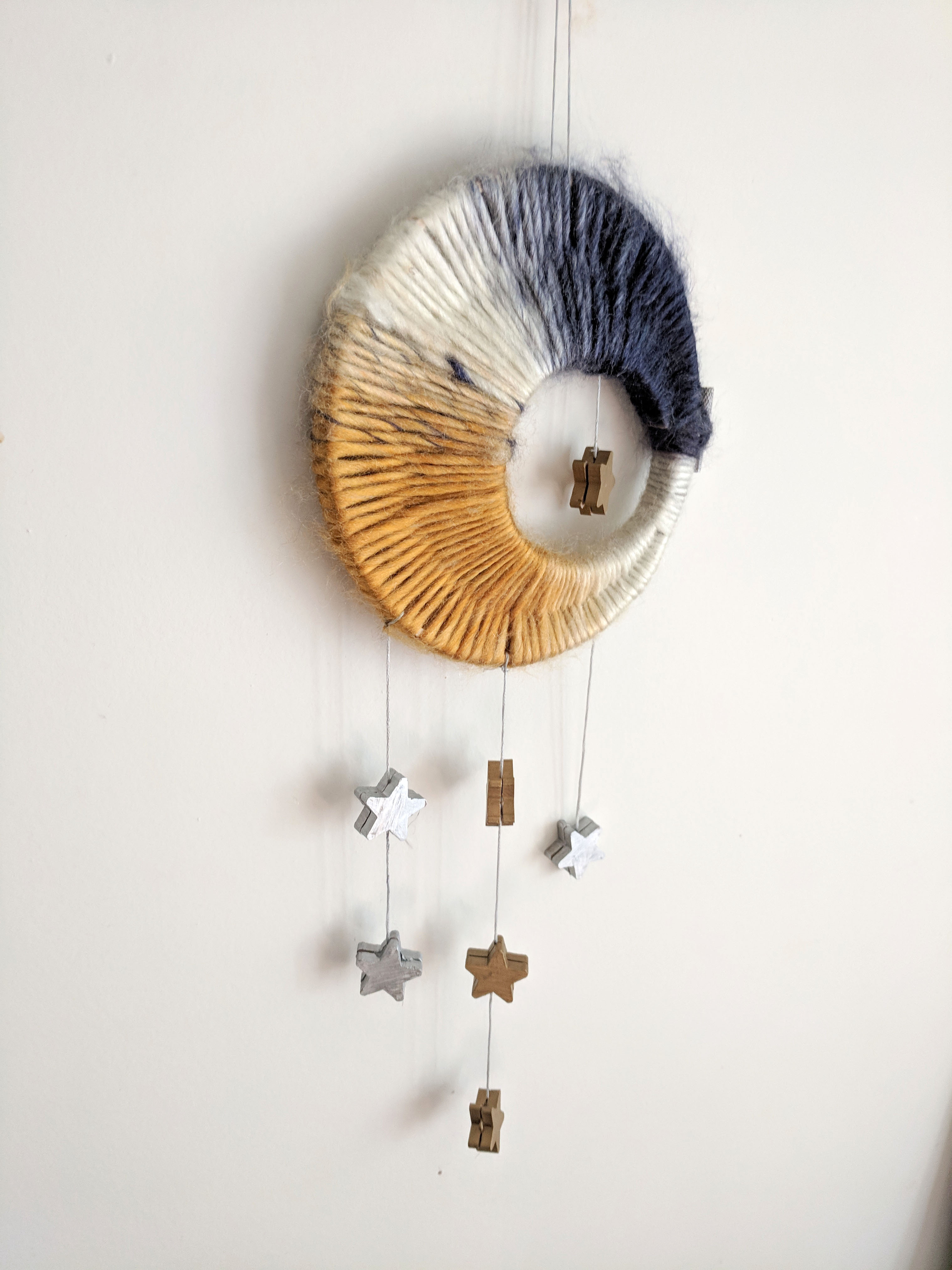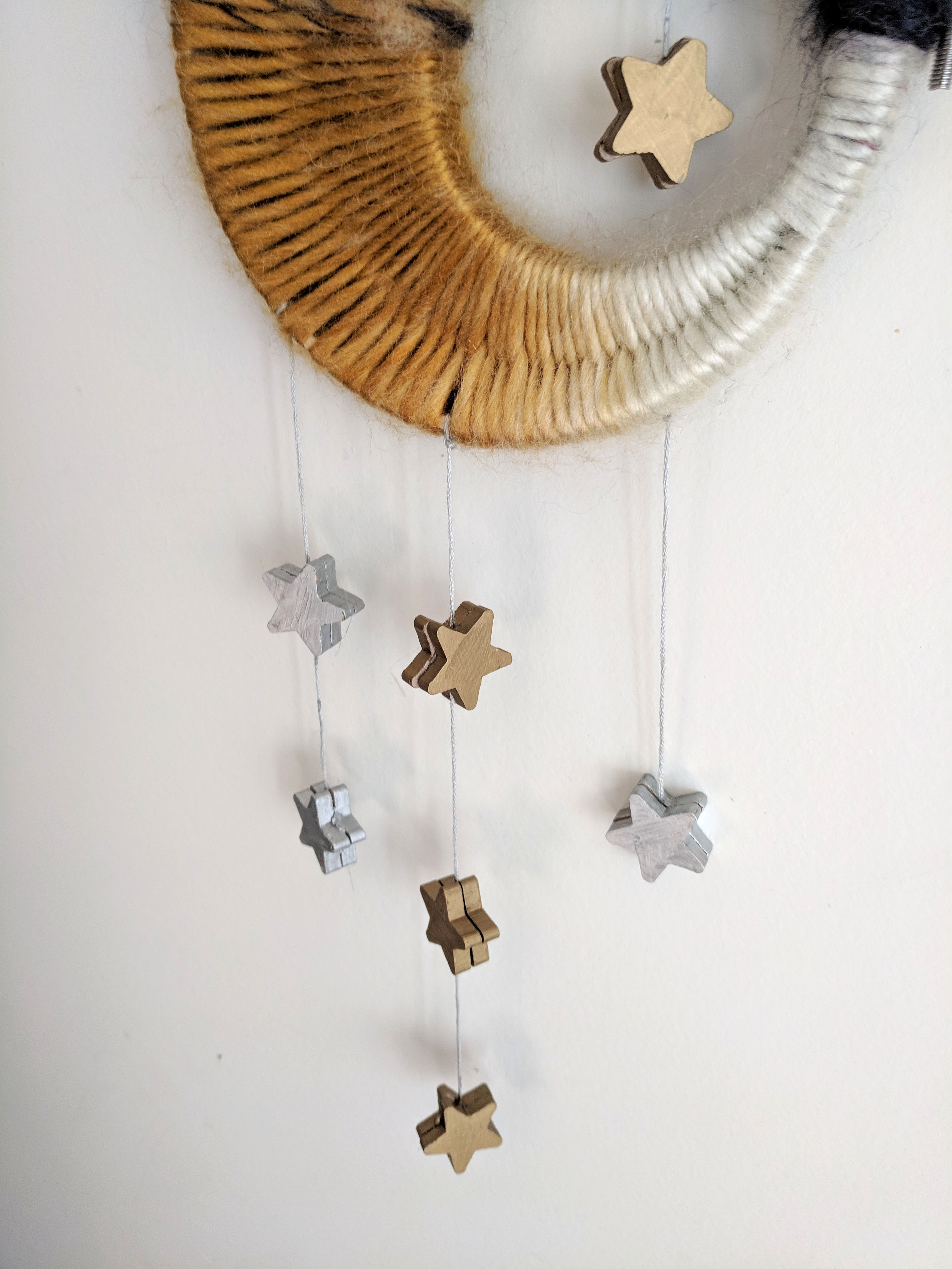 Yarn Wrapped Moon Wall Hanging - Starry Night Wall Decor
