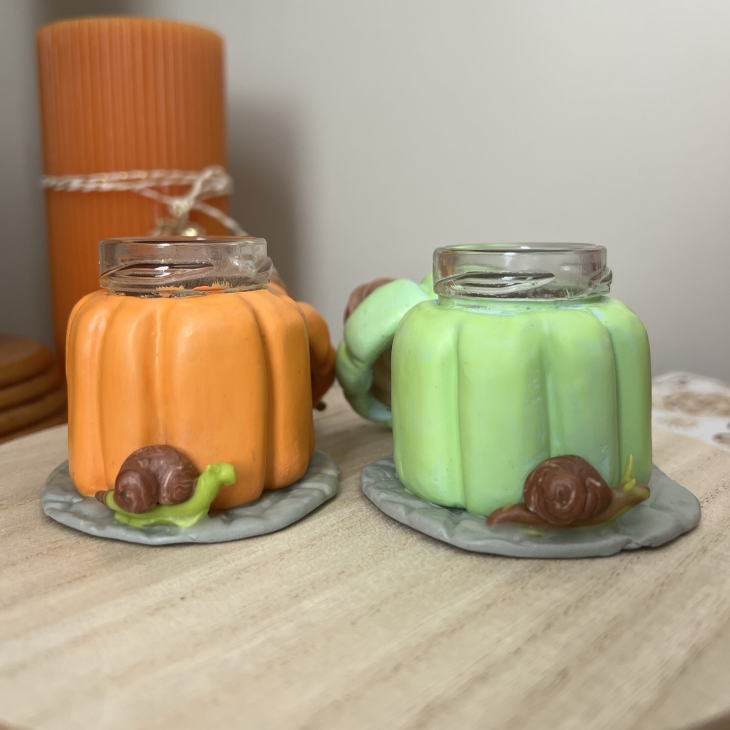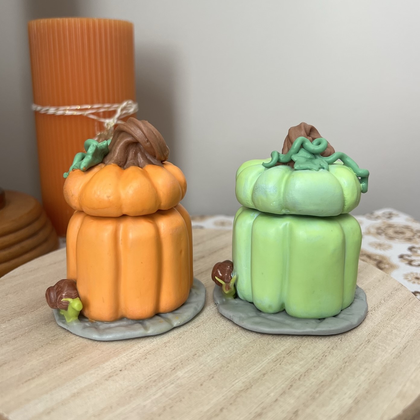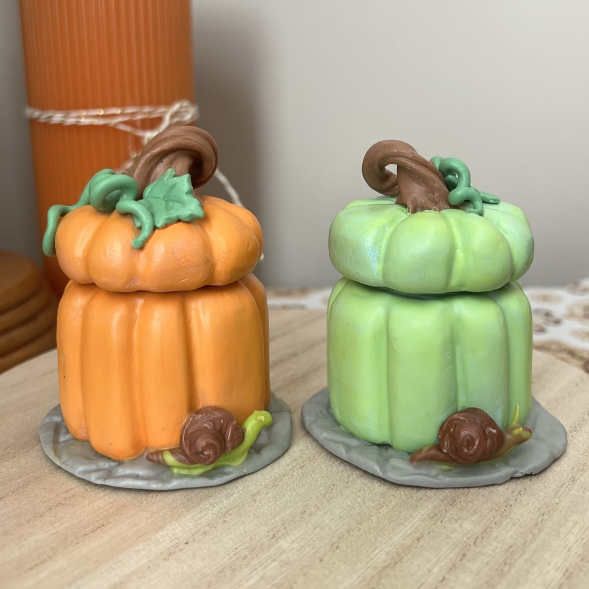 Each pumpkin is actually a usable jar in disguise! You can use it to hide your trinkets, or just keep on display. It should not be used to store unwrapped food or medication. Although the jar is food safe, it would be difficult to keep it completely clean and sanitized. If needed, it can be hand washed with regular dish soap, but repeated cleaning could cause the adhesive to dissolve and the clay would crack or break apart.