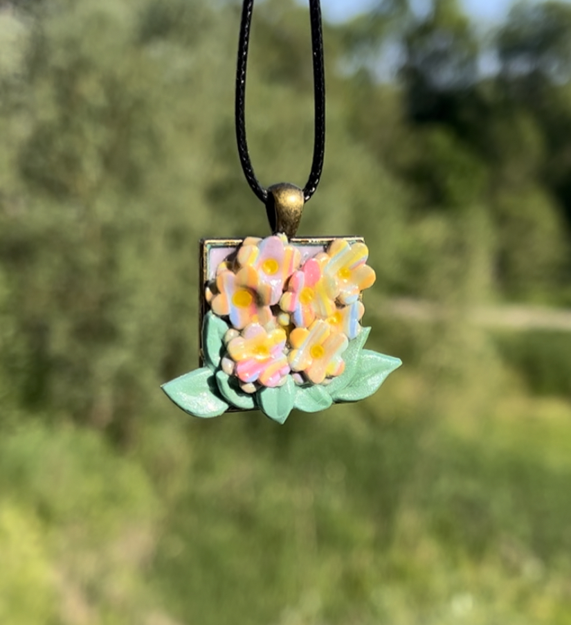 Marbled Rainbow Flower Bouquet Pendant Necklace